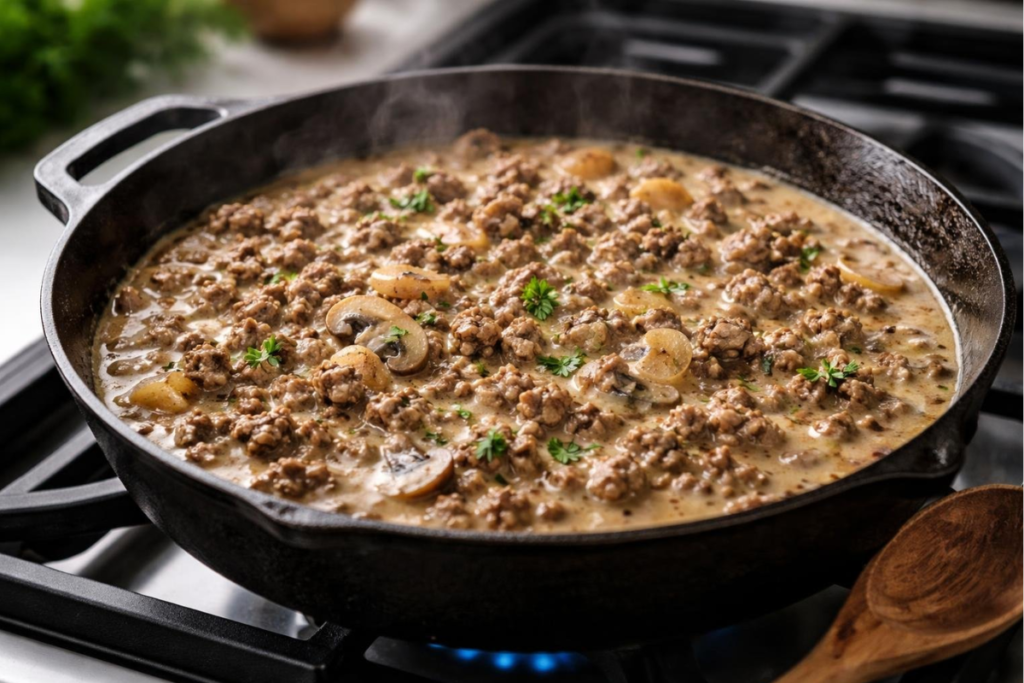 Ground Beef Stroganoff With Mushrooms