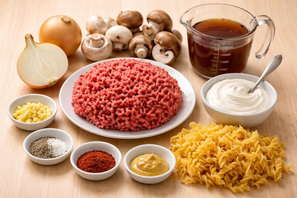 Ingredients for Ground Beef Stroganoff With Mushrooms
