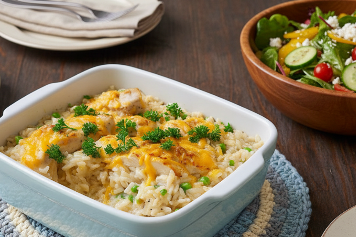 - Preheat the oven to 350°F (175°C). While it warms up, lightly grease a 9×13 casserole dish with nonstick spray or butter. This step keeps the rice from sticking—totally worth it!