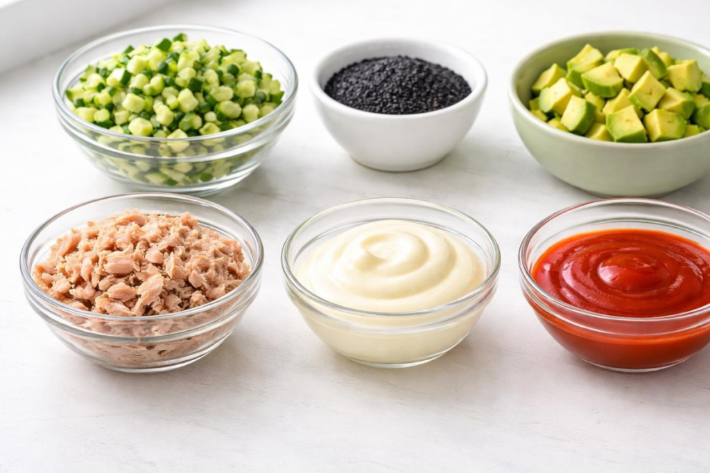 Ingredients for Spicy Canned Tuna Rice Bowl